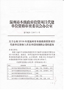 BOB°ëµº¼¯ÍÅ»ñ2016Äê¶ÈÎÂÖÝÊб¾¼¶Õþ¸®Í¶×ÊÏîÄ¿´ú½¨µ¥Î»×ʸñ